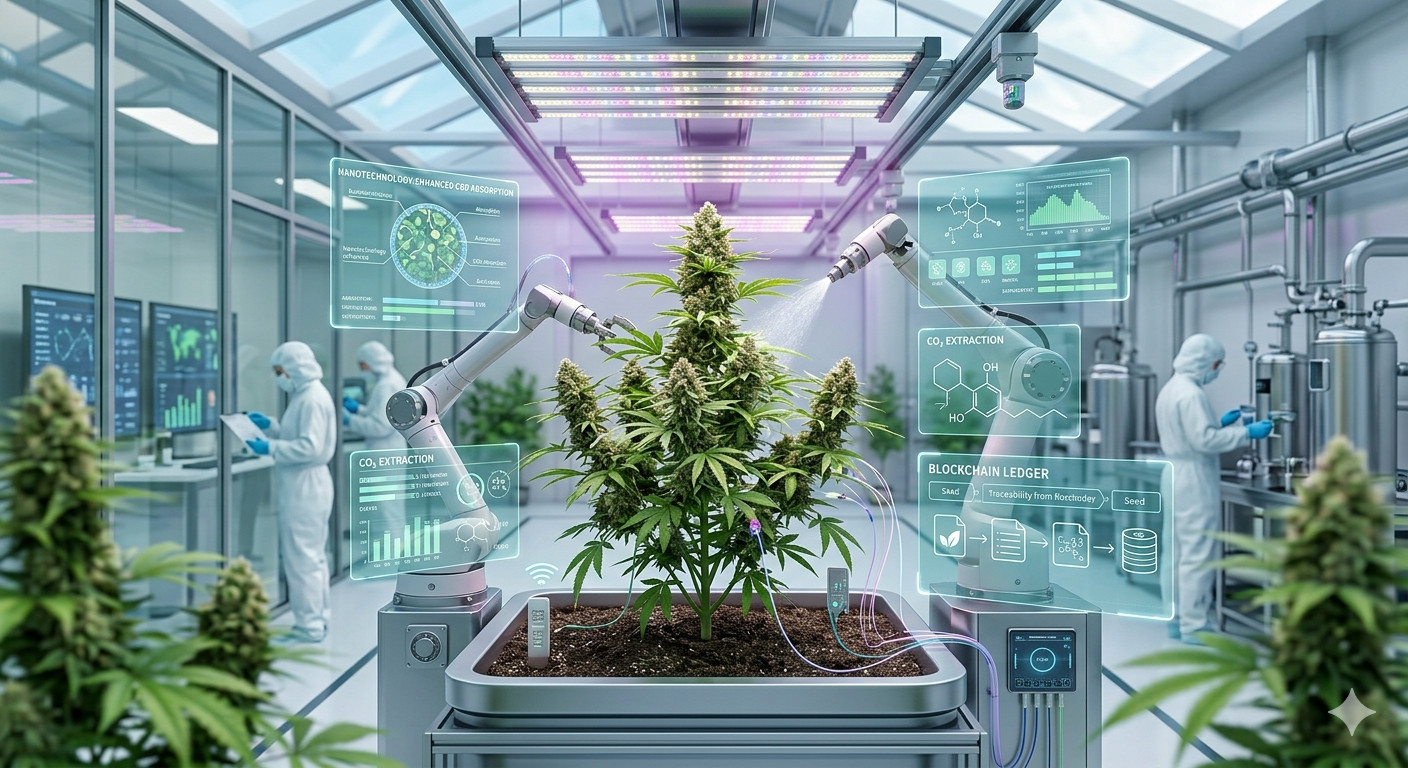 Um dos maiores obstáculos do CBD é a sua baixa solubilidade em água. Quando consumido de forma tradicional, o CBD tem uma biodisponibilidade de apenas 4% a 20%. A tecnologia está a mudar isto através da Nanoemulsificação.